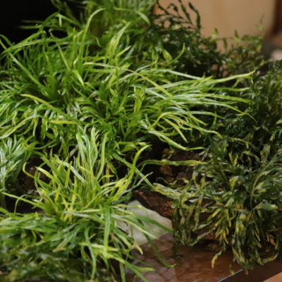 水草の入荷がありました。 トロピカ社の活着済み上物 デンマークの有名水草ブランド 【ボルビディス・ヒュデロッティ】¥6,500 水中・水上 オシダ科 アフリカを代表する活着水生シダ 水上展開も可能。 鮮度の良い水、適度…
